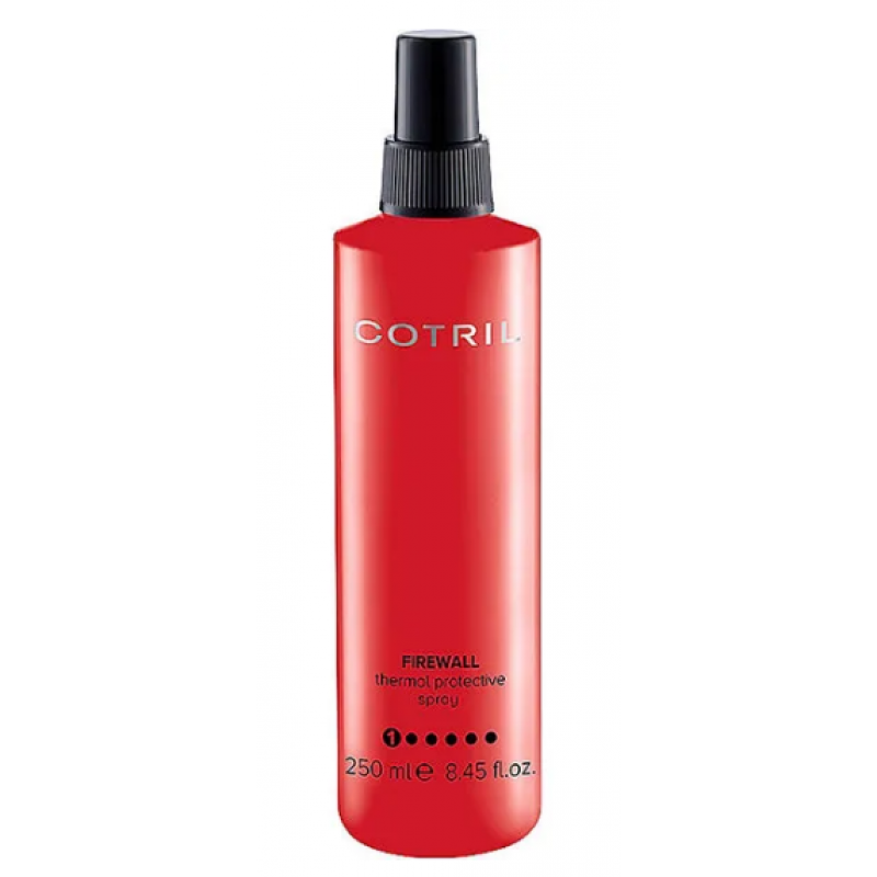 Термозахисний спрей Cotril FIREWALL призначений для захисту волосяного волокна від високих температур прасок, щипців для завивки та фенів. Рідкі активні компоненти, що входять до його складу, створюють на волоссі тонку плівку, яка запобігає надмірному зневодненню волосся під час розчісування.