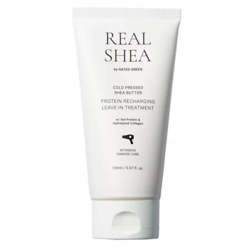 Відновлюючий термозахисний крем для волосся Real Shea Protein Recharging Leave-in Treatment від бренду Rated Green (Південна Корея) - салонний продукт, що містить комплекс натуральних речовин, які швидко запускають процес тонізування та природної регенерації.
