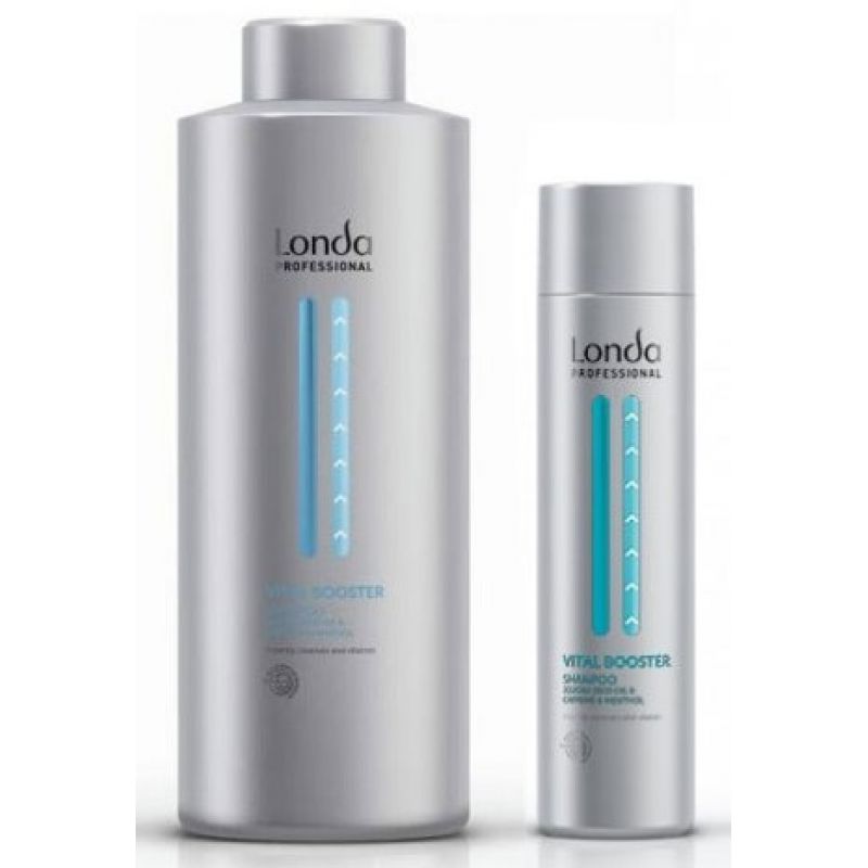 Зміцнюючий шампунь, розроблений у лабораторіях німецької компанії Londa, - найкращий засіб для глибокого і водночас дуже дбайливого очищення шкіри голови та ослабленого пошкодженого волосся. У складі шампуню Лонда – цілий комплекс активних компонентів природного походження. Олія жожоба, що входить до складу шампуню, володіючи прекрасними протизапальними властивостями, глибоко живить, зволожує і відновлює волосся і шкіру голови. Кофеїн і ментол мають освіжаючу та тонізуючу дію. Використання шампуню очищає та освіжає шкіру голови, готуючи їй до дії зміцнюючої сироватки Vital Booster. Шампунь підходить для всіх типів волосся та шкіри голови, включаючи чутливу.