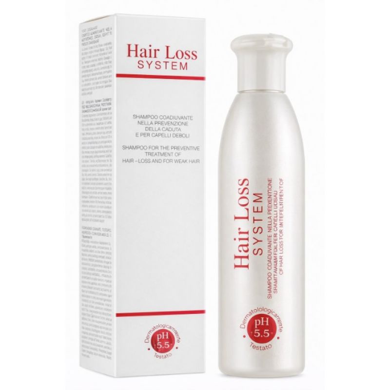 Шампунь з активними поживними, стимулюючими, балансуючими речовинами, серед яких зелений чай, соєві протеїни, гінкго білоба. Шампунь інтенсивно живить і зволожує волосся, наділяє його сяйвом, забезпечує захист та відчуття тривалого комфорту. Завдяки такому комбінованому підходу, препарати Hair Loss System гармонійно вирішують будь-яку проблему волосся при найчутливішій та делікатній шкірі, у найкоротші терміни, з очевидною результативністю та максимальною зручністю.