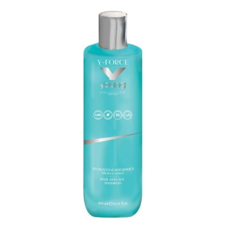 Young Y-FORCE Shampoo — професійний безсульфатний шампунь, створений для інтенсивного живлення, глибокого зволоження та відновлення ослабленого, сухого, ламкого або фарбованого волосся. М’яка, але ефективна формула відновлює структуру волосся, зменшує ламкість і робить волосся більш пружним і блискучим.