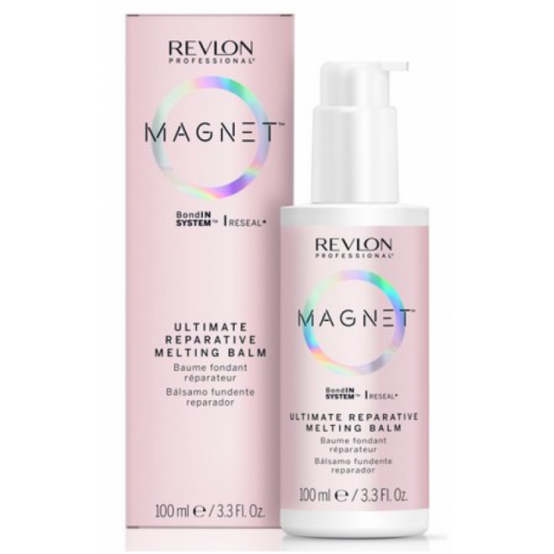 Magnet Ultimate Reparative Melting Balm, що відновлює бальзам, створений фахівцями Revlon Professional в рамках лінійки для професійного застосування. Засіб забезпечує активне відновлення пошкоджених, ослаблених, висушених ділянок, ефективно ремонтує кінчики, що січуться, повертає пасмам гладкість, еластичність, м'якість і слухняність.