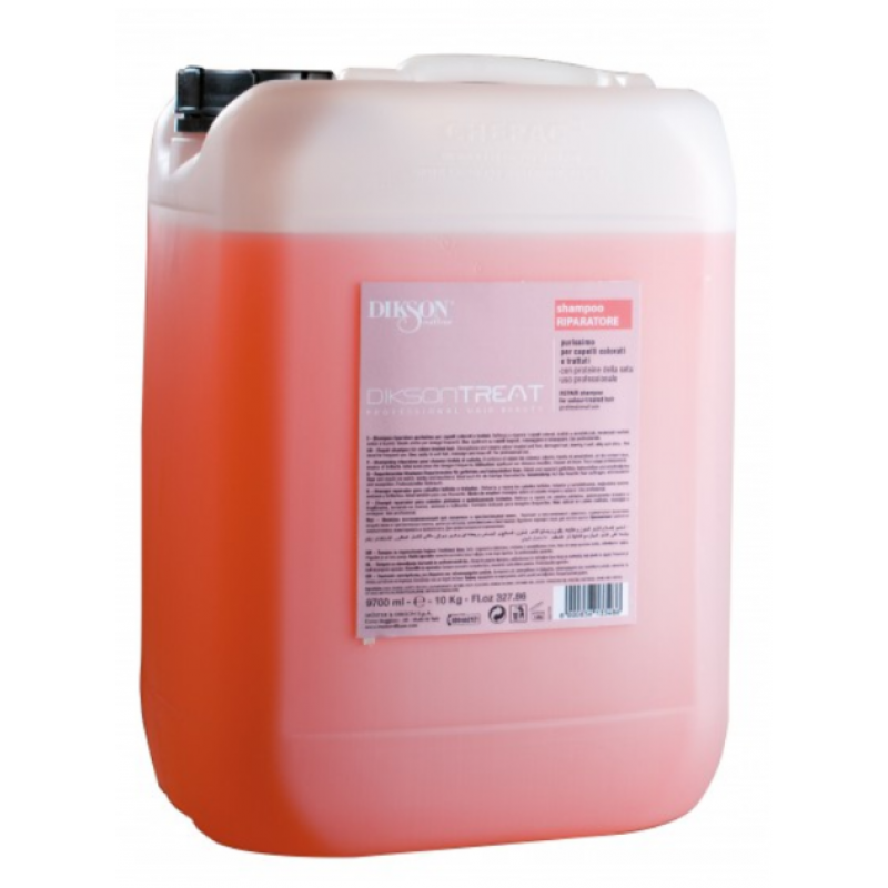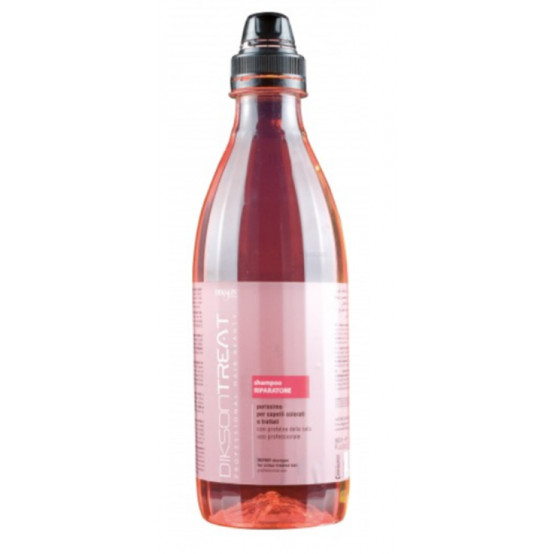 Dikson Treat Shampoo Riparatore має зміцнюючий та відновлюючий ефект. Наповнює пошкоджене волосся життєвою силою і робить його міцнішим. Включає в себе UF-фільтри і речовини, що запобігають вимиванню кольору фарбованого волосся і перешкоджають утворенню кінців, що січуться. Шовкові протеїни захищають волосся від зневоднення, збільшують еластичність і надають чудового сяйва. Провітамін В5 (пантенол) забезпечує зволоження волосся та відновлює його на структурному рівні. Рекомендується для найчастішого застосування.