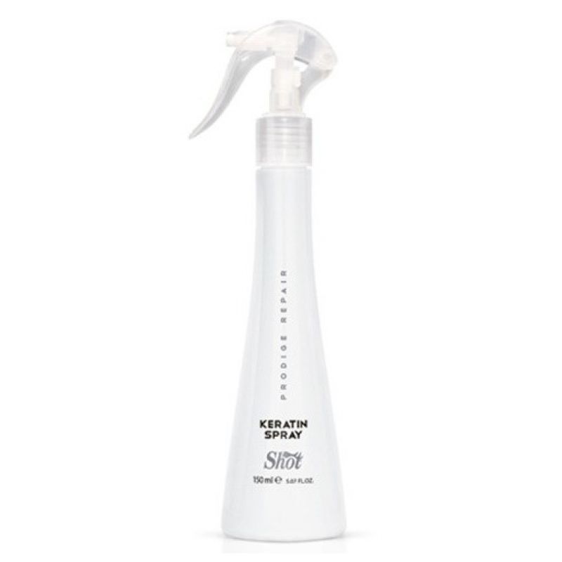 Миттєво проникає у пошкоджену структуру волосся, відновлює його зсередини та розгладжує зовні. Спрей, що відновлює, з кератином Shot Prodige Repair Keratin Spray, що не вимагає ополіскування, миттєво проникає в пошкоджену структуру волосся, відновлює його зсередини і розгладжує зовні. В його основі використання кератину та амінокислот, одержуваних із клітин стебел винограду. Такі активні речовини допомагають у оновленні та відновленні фолікулярної структури волосся.