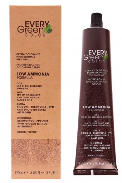 Пропорція розведення: 1:1,5 1:2 Запах: має квітковий аромат. У чому особливість барвника та окислювача серії Every Green? низький..