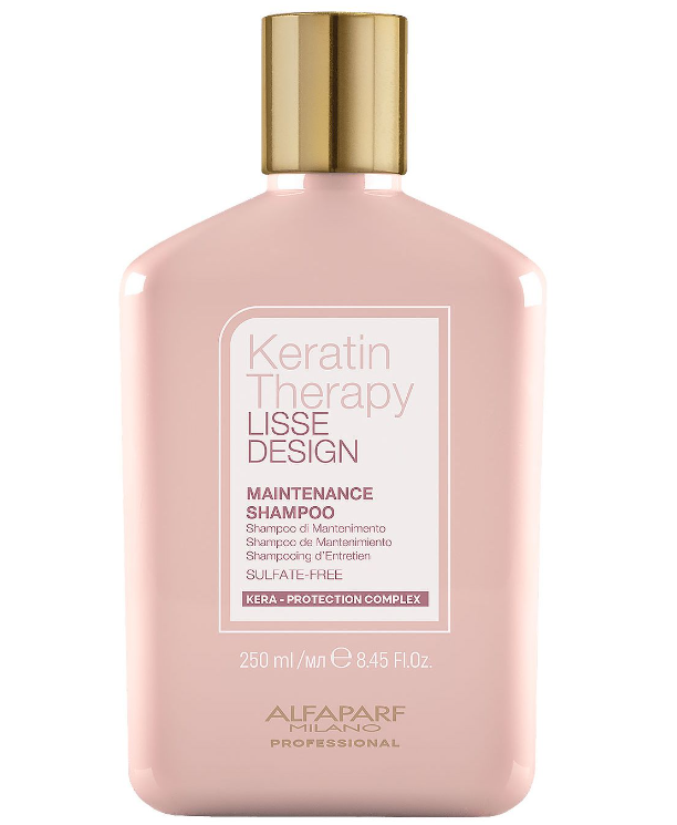 Lisse Design Keratin Therapy Maintenance Shampoo + Conditioner - це багатий кератином терапевтичний шампунь для всіх типів шевелюри, що ідеально підходить для продовження ефекту кератинових процедур в салоні. Не містить солі, сульфатів, парабенів та інших шкідливих інгредієнтів, формула поєднує гідролізований кератин та четвертинний колаген з цінним пом'якшуючим засобом – олією бабасу. Пасма залишаються м'якими та еластичними, з покращеним блиском і слухняністю. Альфапарф кератин відгуки має від багатьох майстрів-перукарів.