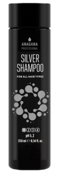 Шампунь сріблястий з анти жовтим ефектом для всіх типів волосся. Для захисту волосся Для очищення волосся Проти сивини Добавки: Ало..