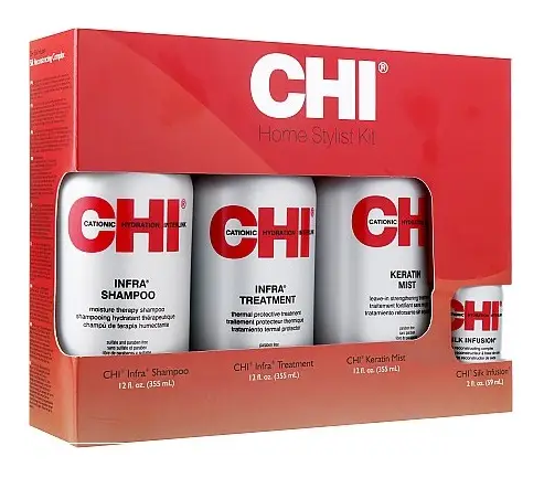 Набір CHI Infra Home Stylist Kit був підходить для нормального та освітленого волосся, до нього входять 4 засоби, які зміцнюють волосся і до..