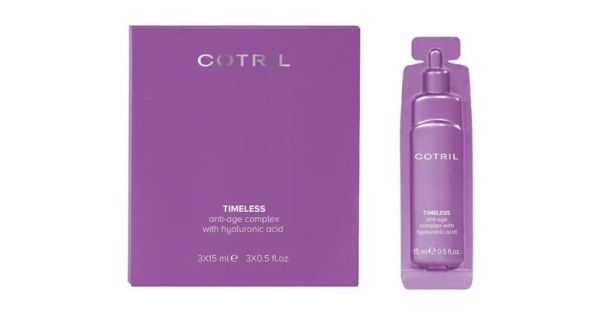 Його мета — зберегти красу волосся з часом, борючись зі старінням, забезпечуючи глибоке зволоження, неперевершений блиск і тіло для довготривалого косметичного результату. Timeless - це нова антивікова лінія від Cotril.