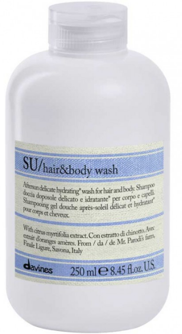 Davines SU/ hair&body wash - Шампунь м'яко очищає та зволожує волосся. Застосуємо як гель для душу. Входять до складу бета-каротин і екс..