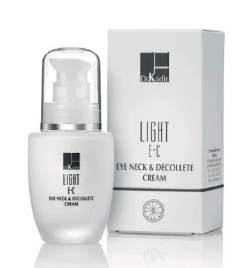 DR.KADIR Light E+C Eye Neck & Decolte Cream - Крем для шкіри навколо очей та шиї з вітамінами Е+С Рідка емульсія легкої текстури, що мі..