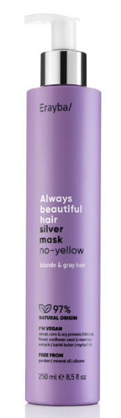 Антижовта маска Silver No-Yellow - веганська маска, що тонує, з натуральними компонентами. Рекомендується для дуже світлих, знебарвлених і с..