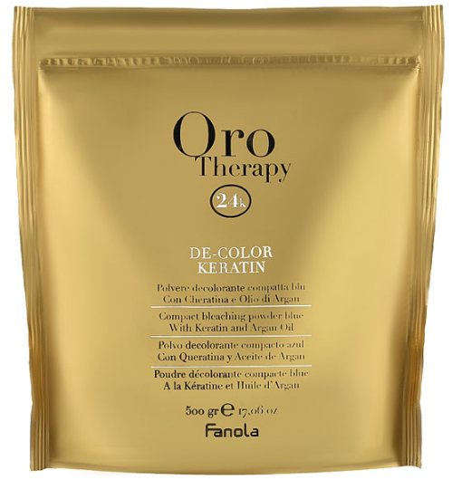 Fanola De-Color Keratin 24K Освітлювальний порошок з кератином 500 гр Порошок для освітлення блакитний Fanola Oro Therapy - це професійн..