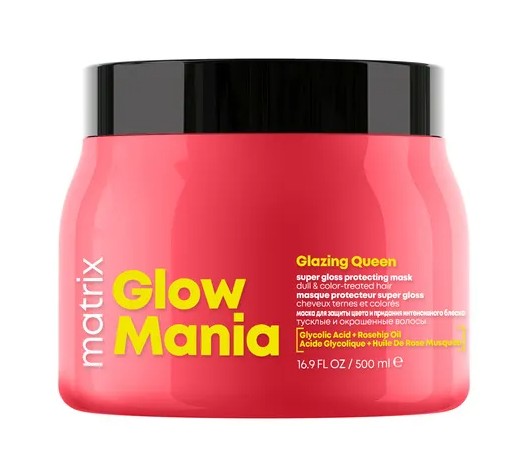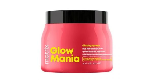 Matrix Glow Mania Glazing Queen Mask - Маска для фарбованого волосся, збагачена гліколевою кислотою, кислотою AHA та олією дикої троянди для..