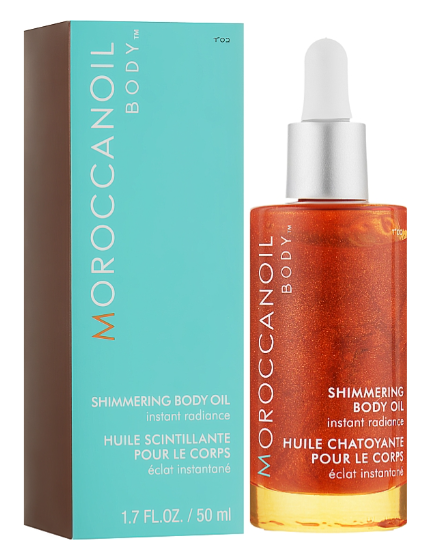 Для сяючої шкіри та надання здорового сяйва, використовуйте мерехтливе масло для тіла Moroccanoil. Миттєво вбирається в шкіру, містить багат..