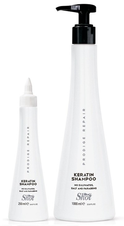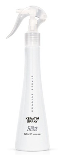 Миттєво проникає у пошкоджену структуру волосся, відновлює його зсередини та розгладжує зовні. Спрей, що відновлює, з кератином Shot Prodig..