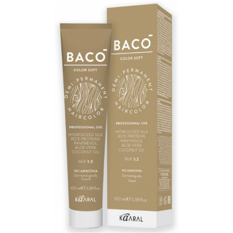 Фарба BACO SOFT COLOR - це нове покоління безаміачної фарби для волосся, яку легко використовувати. Інноваційна формула використовує мікро-пігменти, які освітлюють волосся до 3-х рівнів, освіжають колір волосся та забезпечують інтенсивне фарбування.