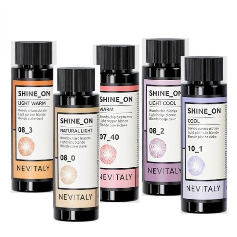 Професійна лінія фарб Shine_On від Nevitaly створена для задоволення потреб перукарів. Результати фарбування надійні, а прогресивне вицвітання, якого можна досягти, рівномірно та делікатно, враховуючи структуру волосся та посилюючи його блиск завдяки делікатним інгредієнтам натурального походження.