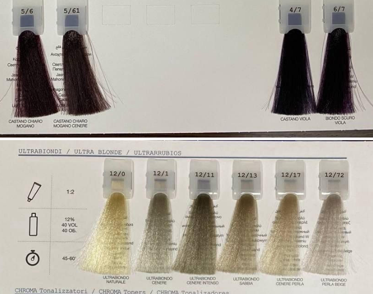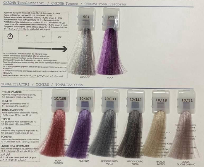 Барвники поєднуються з окси-кремами Elgon® 30 і 40 vol. у стандартній пропорції 1:2 і витримуються на волоссі до 45 хвилин для суперосвітлювального фарбування.