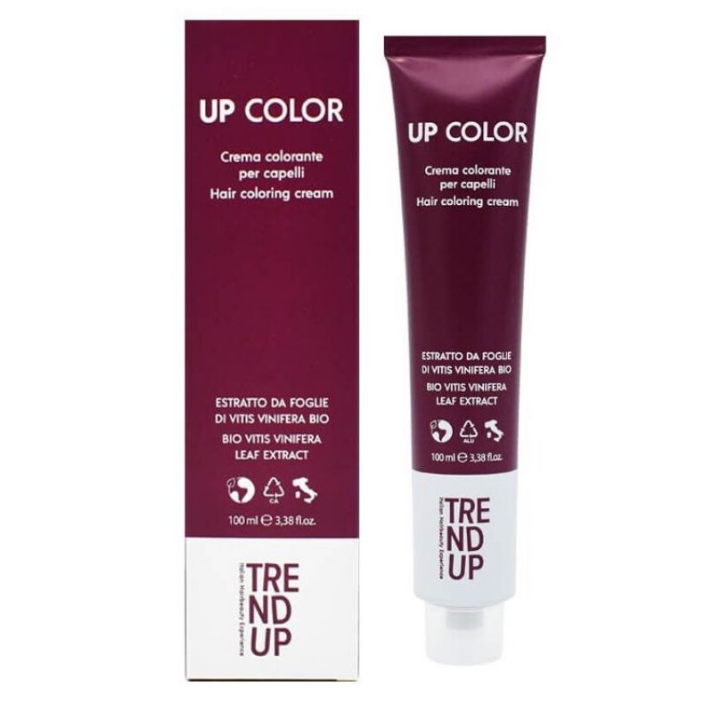 Trend Up Color Крем-фарба для волосся 100мл Фарба для волосся UP COLOR марки Trend Up перманентного фарбування з органічним екстрактом виноградної лози, виготовлена на основі екстракту листя червоної лози, що має антиоксидантні та тонізуючі косметичні властивості, чинить захисну дію на волосся, надає йому еластичності та блиску.