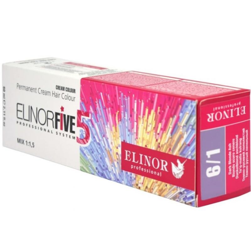 Фарба для волосся ElinorFive 5 professional system – на катіоноактивній основі, збагачена маслами, мікропротеїном пшениці та сої, пантенолом (провітамін В5), містить до 1% аміаку в фарбуючий склад. Мікропротеїн сої та пшениці при фарбуванні глибоко проникають у структуру волосся, заповнюючи і розгладжуючи волосяний стрижень. Волосся відновлює свою міцність і життєву силу.