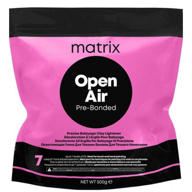 Освітлювач Matrix Open Air Prebonded Clay Lightener забезпечує до 7 рівнів освітлення та ідеально підходить для малювання від руки. Основа з каолінової глини та текстура збитої глини забезпечують точність і насиченість без крапель, а також формують природні вигини волосся, що робить його ідеальним для точного балаяжу для будь-якого малюнка. Лимонна кислота у складі допомагає захистити зв'язки, зберігаючи міцність волокон.
