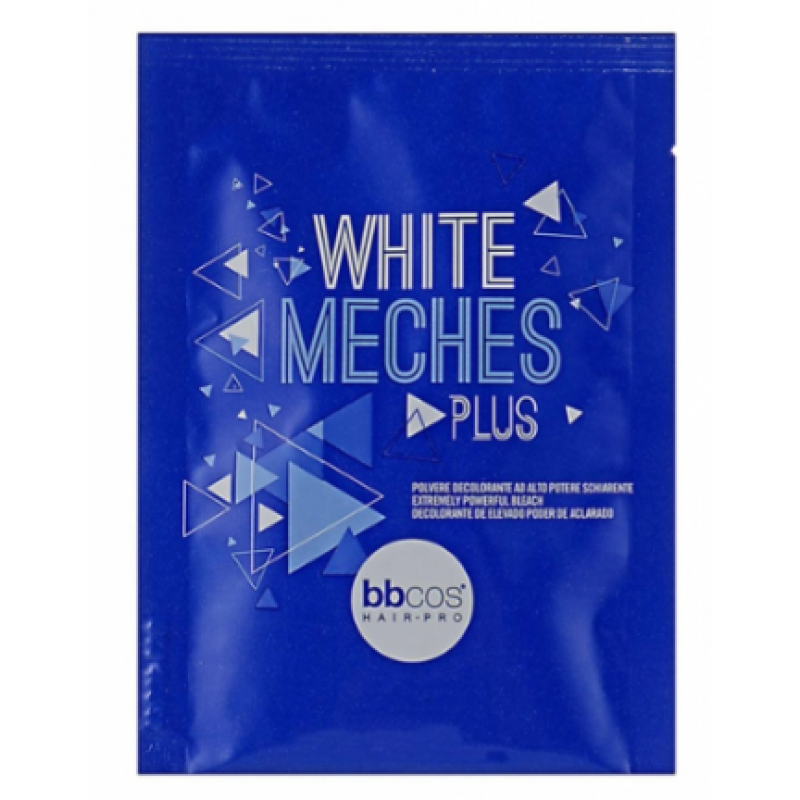 White Meches Plus - нелетучий порошок с высоким потенциалом осветления. Его синий цвет происходит от специальных пигментов, которые служат для контрастирования желтого / оранжевого цвета, обнаруженного в обычном процессе удаления цвета. Шесть различных степеней осветления могут быть достигнуты, все из которых уважают целостность структуры волос.