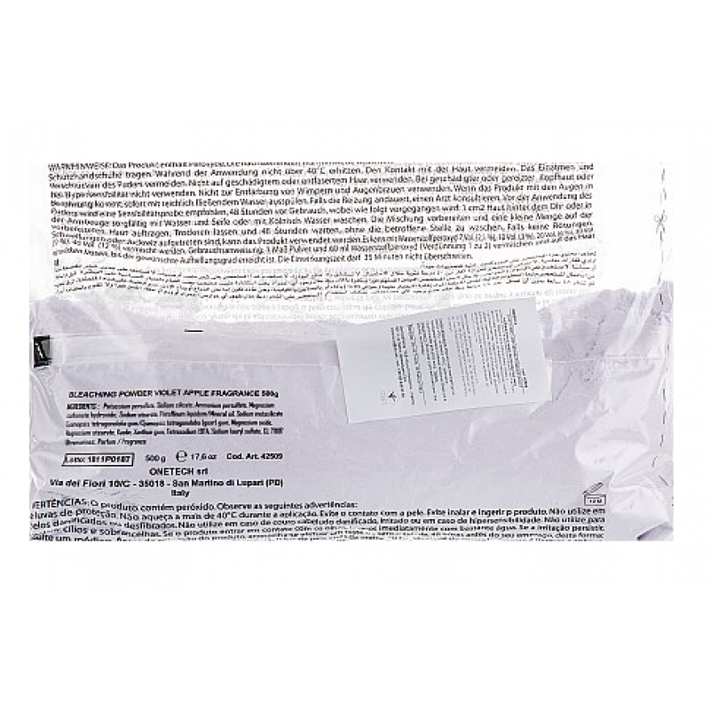 Порошок, що знебарвлює, високої косметичної дії. Ідеально підходить для всіх методів освітлення, зменшує теплий жовтий відтінок. Ідеально для: натурального або фарбованого волосся. Швидкий та максимально ретельний ступінь освітлення до 7 рівнів. Захищає волосся, зберігає його зволоженим зсередини. Формула зі спеціальними фіолетовими мікро пігментами, що нейтралізують небажані жовті тони. Рекомендовані пропорції: - традиційне знебарвлення, мелірування, шатуш: 1:2 - Зняття небажаного відтінку: 1:3 Використання: в неметалевій ємності змішати необхідну кількість порошку з емульсією окислювальної Inebrya або Bionic активатором. Нанести продукт пензлем на сухе, немите волосся. Залишити на 5-35 хвилин до бажаного освітлення. Ретельно ополоснути та промити шампунем Inebrya.