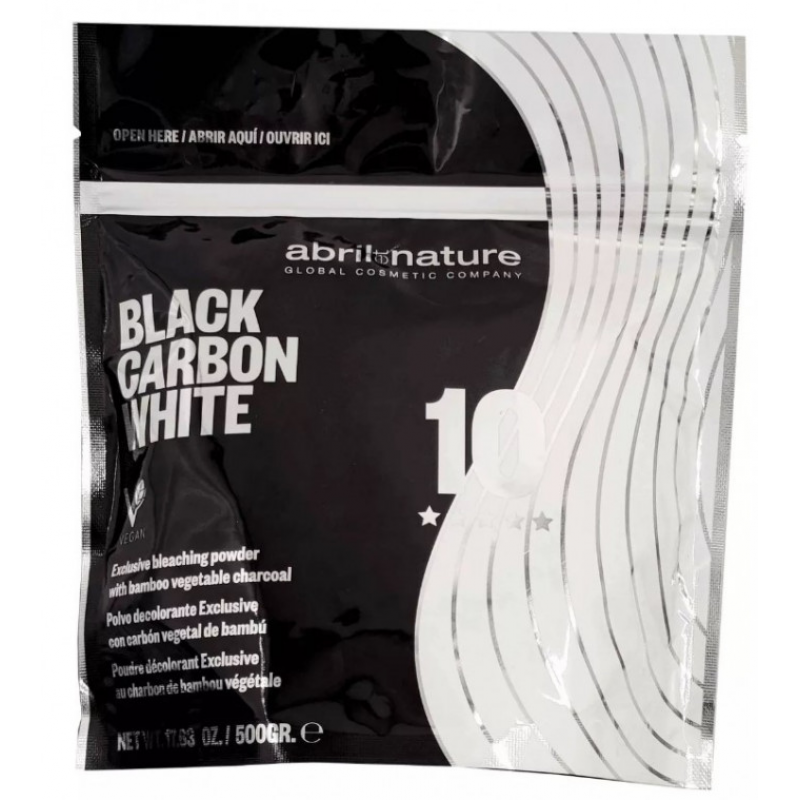 Black Carbon White від April et Nature - освітлюючий порошок з високою освітлюючою силою до 9 відтінків. Його нова, більш потужна формула дозволяє досягти максимальної сили освітлення навіть за допомогою кремів-окислювачів з низьким вмістом перекису водню. Креми-окислювачі з високим вмістом перекису водню можуть мати побічний ефект — пожовтіння волосся. На додаток до високої освітлюючої здатності, він має пом’якшувальну дію на волосся, забезпечуючи швидке освітлення, не пошкоджуючи волосся.