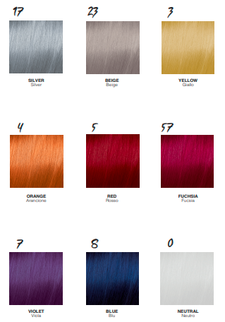 Всі кольори можна змішувати один з одним для отримання ще більшої кількості відтінків. Допомагає швидко оживити або посилити тон раніше фарбованого волосся. Ідеально підходить для попередньо освітленого волосся для створення креативного кольору. Поступово змивається. Не містить солей важких металів.