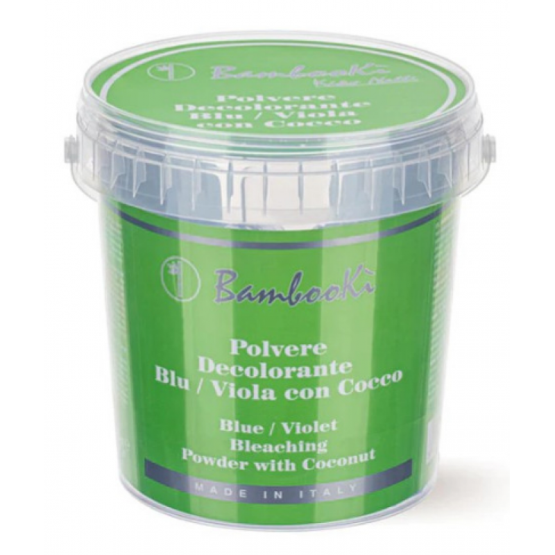 BAMBOOKI Пудра BLU / VIOLA для знебарвлення, 450г Енергонезалежний гранульований відбілюючий порошок Bambookì дозволяє освітлити до семи тонів. Це надзвичайно інноваційний продукт, який завдяки своїй швидкій дії має ефективні результати.