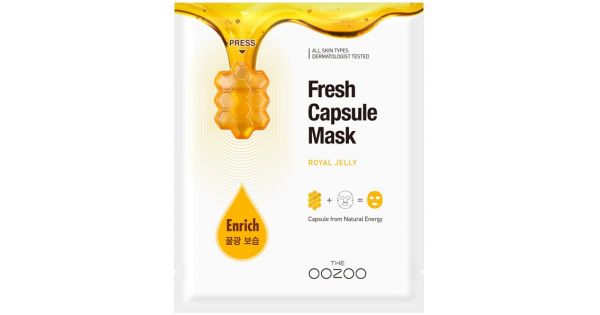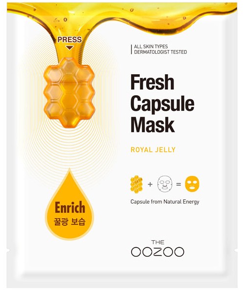 Маска для лица с капсулой-активатором «маточное молочко» THE OOZOO Fresh Capsule Mask Royal Jelly укрепляет защитный барьер, благодаря форму..