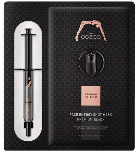 Премиум маска с высокой концентрацией растительных экстрактов THE OOZOO Face Energy Shot Mask Premium Black восстанавливает здоровье и молод..
