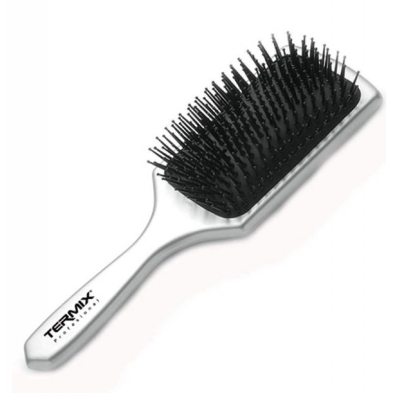 Прямоугольная пневмощетка Termix Paddle Hairbrush - с резиновой подушкой и толстой и устойчивой повреждениям нейлоновой щетиной с шариковыми наконечниками для нежной чистки и расчесывания всех типов волос.