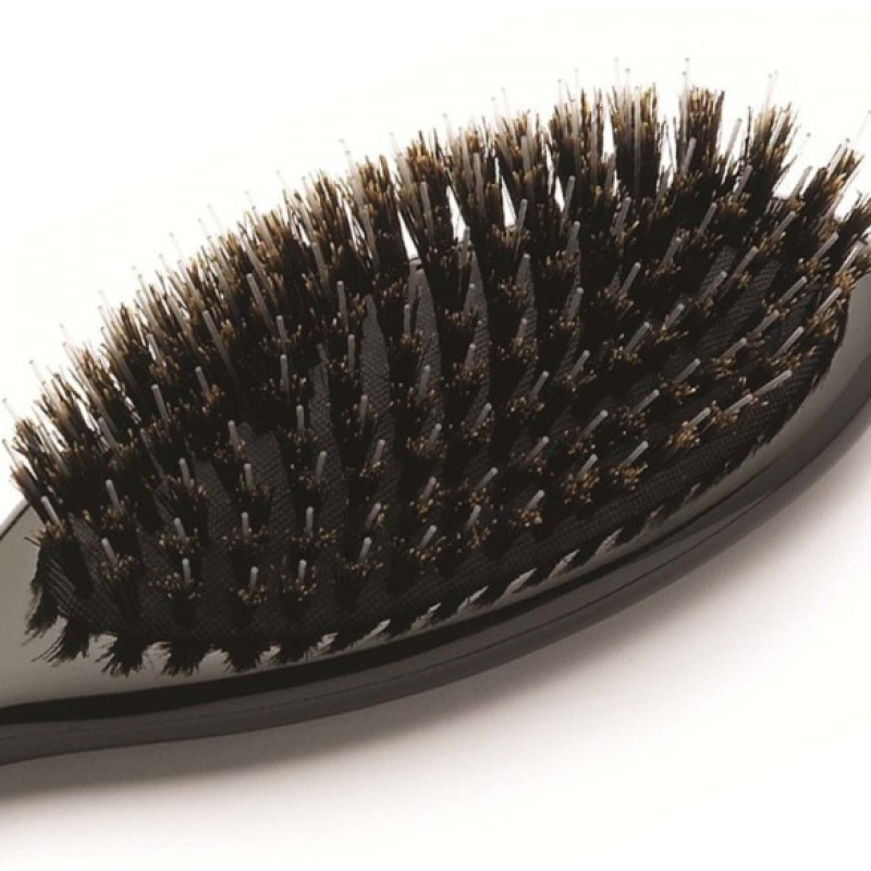 Волосы после расчесывания становятся гладкими, блестящими и шелковистыми. Щетина тщательно подбирается со спины и подбрюшья кабана. Такая щетка будет аккуратно и бережно захватывать каждую, даже самую тонкую прядь, равномерно прочесывать ее, проветривать и выравнивать.